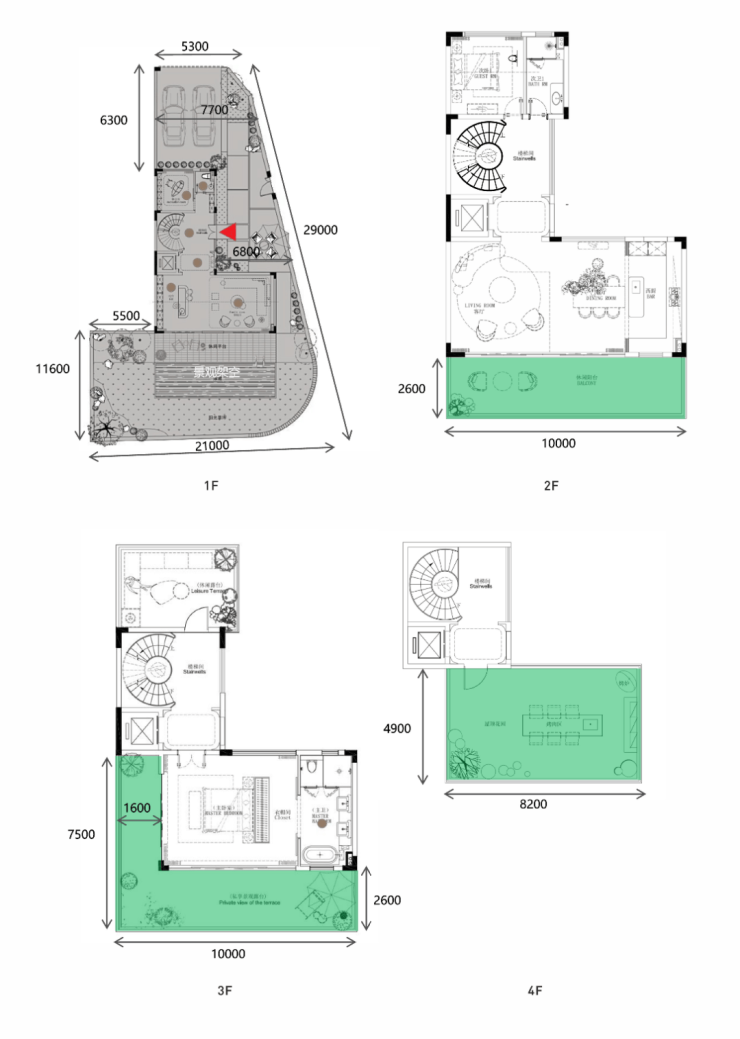 约187㎡拾野合院/131-135㎡森海别院A首层架空,赠送约270㎡全覆盖庭院B全套房配置,回家亦有星级酒店礼遇C约145㎡空中露台,极目山海相依