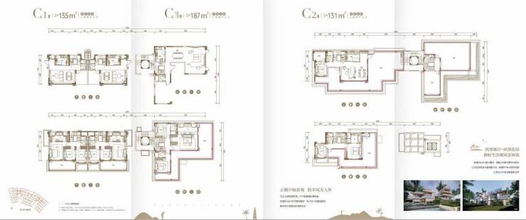约133-137㎡森海别院A约185㎡私家院落,院子>房子超配体验B双面宽空中露台,于家中坐拥星辰大海C独立玄关入户,度假亦彰显生活仪式感D全明阔绰三居室,开启一家人美好旅居