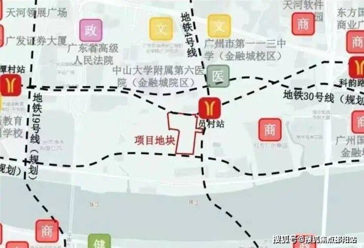 尤为值得一提的是,这是天河比较难得的靠近地铁站的盘,地块东北侧距离地铁5号线与11号线交汇的员村站仅150m,5号线+11号线可以连通广州最核心的几个商务圈---珠城、琶洲、天河北、白鹅潭等等,通达性很强。