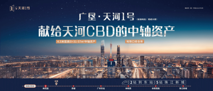 广垦·天河1号雄踞天河CBD 中轴线上,项目以“献给天河CBD的中轴资产”为定位、以“地铁口物业”+“城市综合体”的双赢模式打造,力图再造一个天河CBD中轴资产项目。
