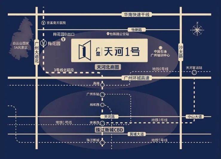 项目位于广州天河怡新路,项目西面约400米是地铁3号线梅花园站B出口,2站到广州东站、5站直达珠江新城,地理位置十分优越。