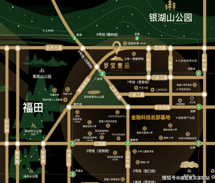 尽享自然景观与城市景观,北侧靠福田“大靠山”塘朗山山脉的银湖山,西侧靠近笔架山公园、深圳市体育中心以及南北贯穿福田的环中心公园,西南可以遥望繁华的福田中心区及平安大厦,东南遥望罗湖CBD。