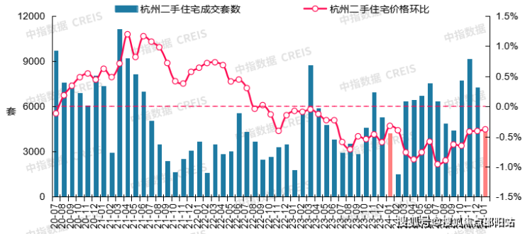 图:2020年7月至2025年1月杭州二手住宅成交套数及二手住宅价格环比走势数据来源:中指数据CREIS(点击查看)市场监测:https://www.cih-index.com