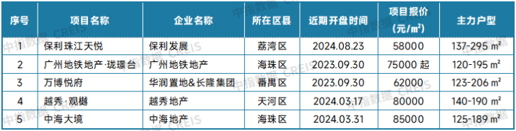 表:广州新房典型项目数据来源:中指数据CREIS(点击查看)市场监测:https://www.cih-index.com