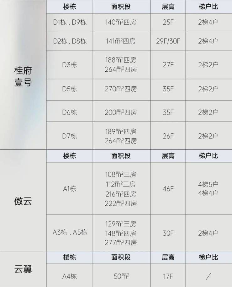 桂府壹号:140㎡四房,189㎡四房,200㎡四房,264㎡四房