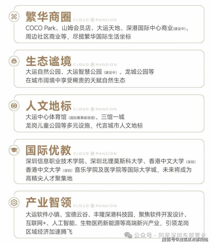 大运新城-深圳东部唯一“城市会客厅”,与前海中心、深圳湾超总、香蜜湖金融街等区域并列深圳六大城市会客厅,汇聚东部大型综合交通枢纽,标杆性文化体育场馆、产业精英商务群、国际大学城等优势,大运新城将成为深圳东部重要发展极点,推动深圳东部增长。