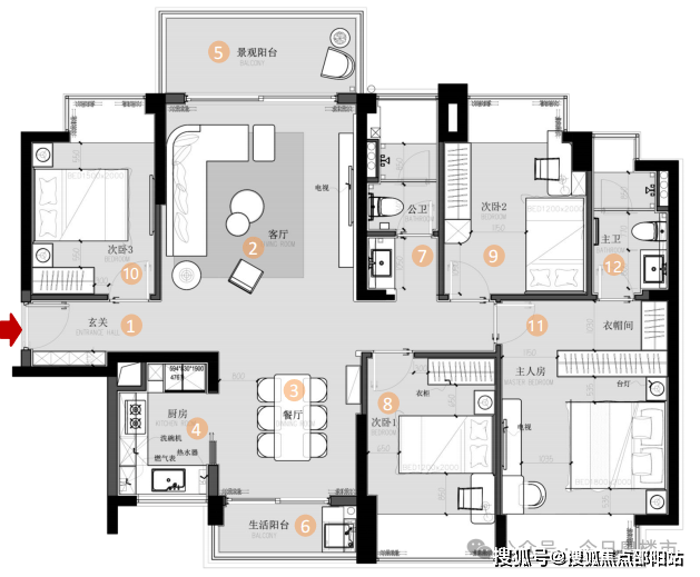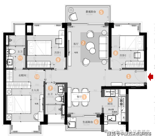 项目整体户型以改善大户型为主。分别是100㎡、106㎡、132㎡、150㎡等