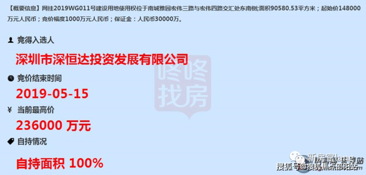 2019年5月,鹏瑞以23.6亿元的总价拿下该地块,其中约9.3万㎡的商业面积需要自持,再减去约820㎡的公建配套(无偿交给南城街道办),粗略估算楼面价约2.1万元/㎡。