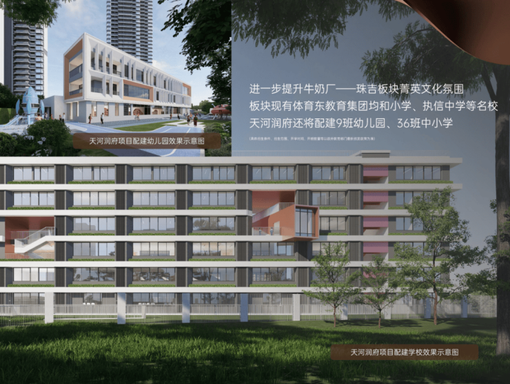 天河润府注重全方位生活配套建设,项目内将配建一所9班幼儿园与36班初中,并规划引进知名教育品牌,为业主提供高质量的学龄前及学龄教育资源。同时,项目周边拥有优托邦商圈、山姆会员店等商业资源,距离中山六院等三甲医院仅几公里,业主可享受便捷的医疗保障。除此之外,项目自带约4万㎡园林景观及多个全龄化功能区,提升社区的绿化和生活品质。