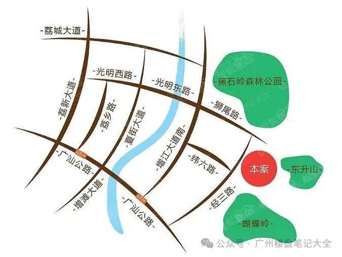 【景观配套】项目距离 6000亩增城城区最大的蕉石岭森林公园只有300米的距离。蕉石岭、东升山、蝴蝶岭三大龙脉环绕,高品质居住区不可复制的生态资源!