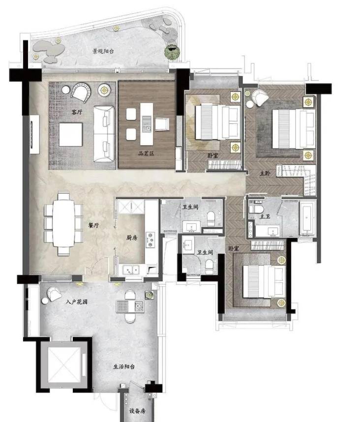 『天启』组团面积约140-250㎡环幕临江大平层,坐拥江景第一排,眺望小蛮腰,享500米宽阔无遮挡江景视野,并邀请三大全球知名设计大师倾力打造,并配备12大国际一线品牌交标,专梯专户四房双套房设计,世界灵感前沿作品礼献广州!