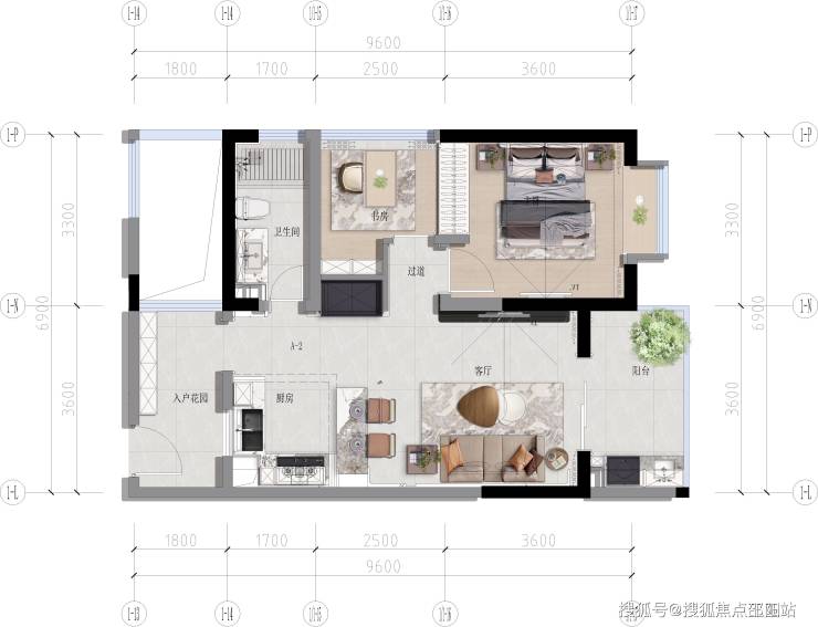 【A-2 建面约60㎡ 两室两厅一卫】