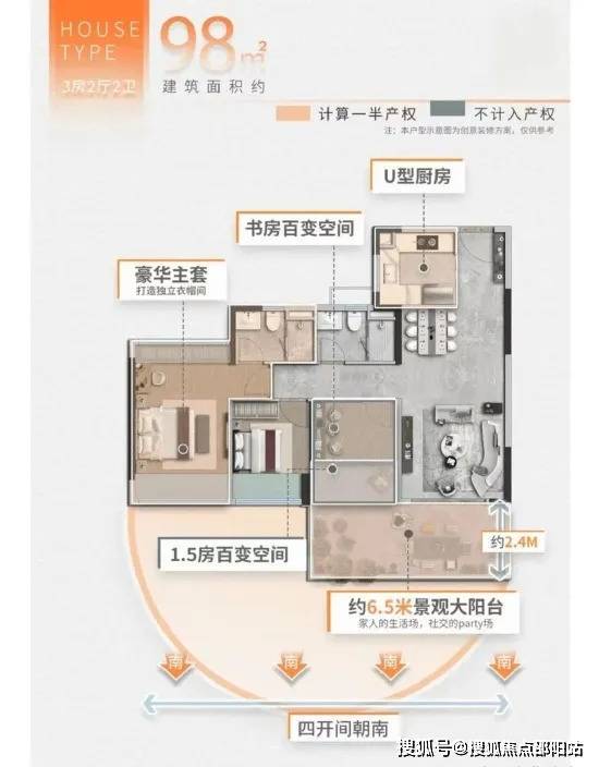 项目主打的是建面约98㎡至140㎡的三至四房户型