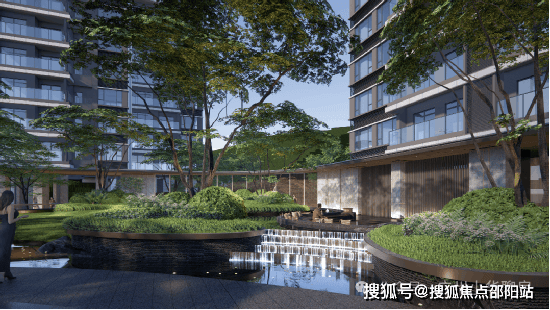 项目内部打造了面积约1.8万平方米的下沉式双层园林,同时尽享高差近5m水景的庭院式立体山水园林。