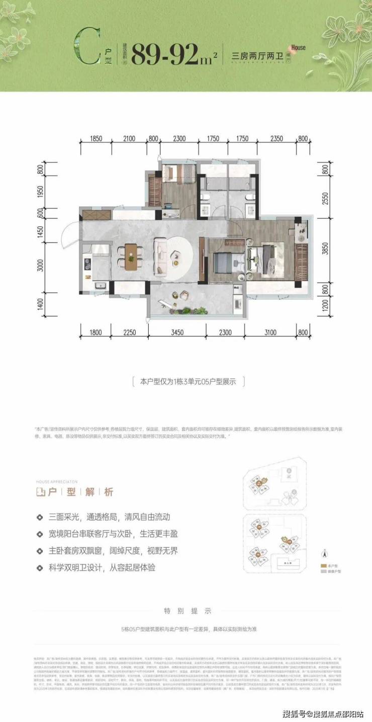 作为招商蛇口深圳公司首代、前海会展片区首个超级新规作品,项目建面约78-117㎡三至四房户型,拓展后实际使用率高达96%-105%,兼顾实用、宽敞、阳光与精致。