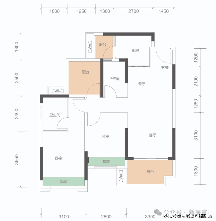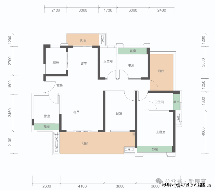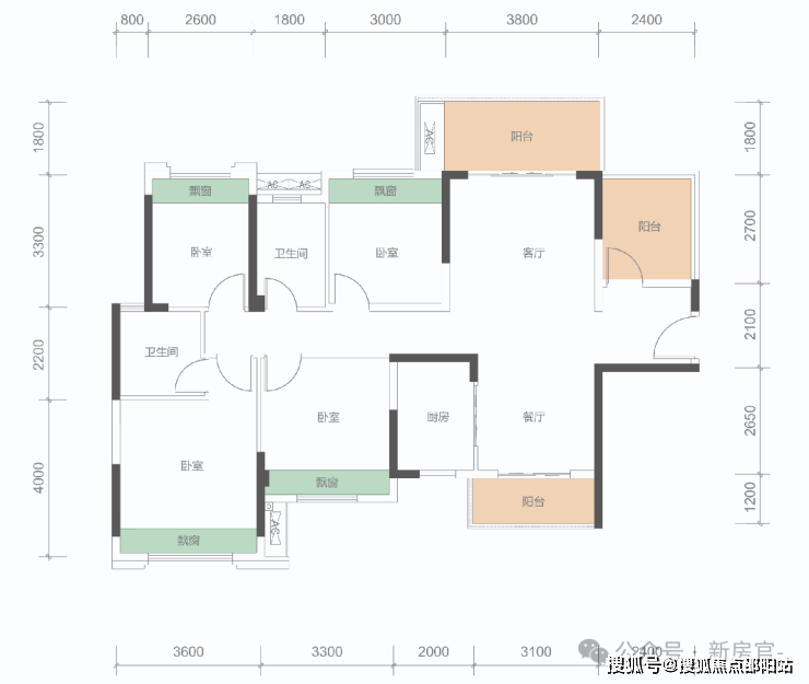 B户型: 100㎡(3+1房,2卫)同级面积稀缺3+1房、稀缺三开间朝南,总价约108万。