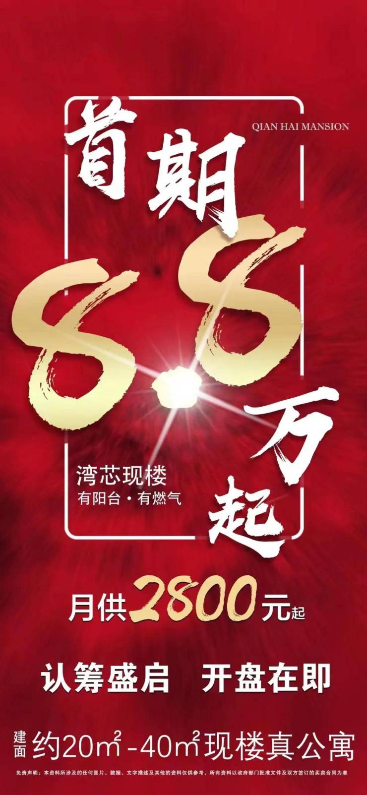 首期8.8万起,月供2800元起,入住前海现楼