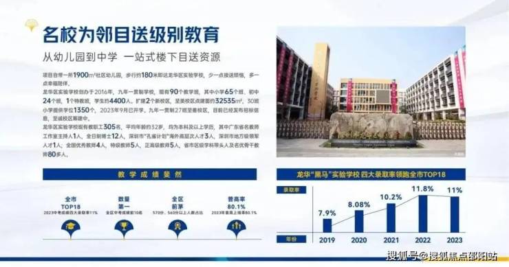 项目周边商业配套红山 6979、Costco 华南首店、龙华天虹、壹方城等繁华商圈。项目自带幼儿园,近邻龙华区实验学校, 12年全龄目送式教育。社区采用围合式设计,规划约 2.3 万㎡景观园林。建面约111㎡-125㎡阔境四房现火热热销中。