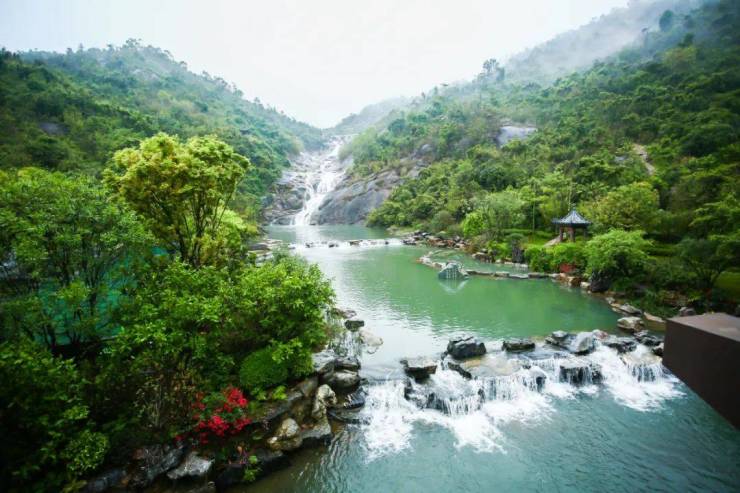 1、一泉一湖两水五山:连绵的道教名山罗浮山余脉、国家级象头山自然保护区、8万平米潋滟龙珠湖、世界闻名的碳酸钠钾型温泉、九龙潭瀑布及白虎涧融合一体,是大湾区不可多得的世外桃源。