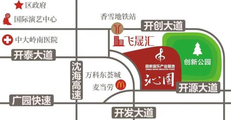 飞晟沁园位处广州科学城核心地段,周边拥有8条公交车线路、地铁6号线香雪站、以及四横五纵密集交通路网,交通便捷。