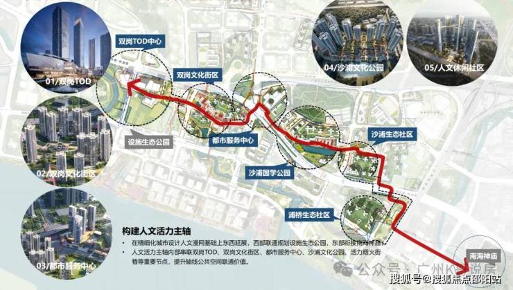 西至设施生态公园,东联南海神庙,构建串联TOD商业、文化街区、都市服务、生态社区等重点项目的漫游活力轴,重点塑造“双岗TOD中心、都市服务中心”两大综合商业地标及“双岗、沙涌”两大休闲文化街区,目前双岗TOD中心已确认引入华润万象系商业运营。