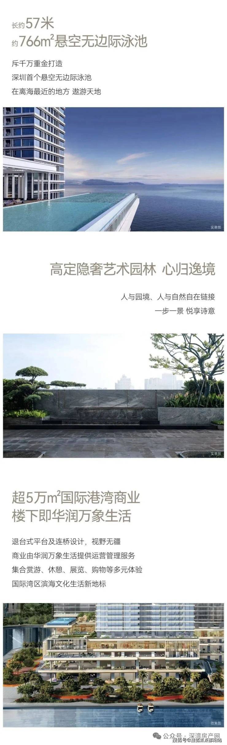 配套的一大亮点是5楼空中花园泛会所,配备深圳首个悬空无边际海景泳池,约766㎡,全部为玻璃打造。