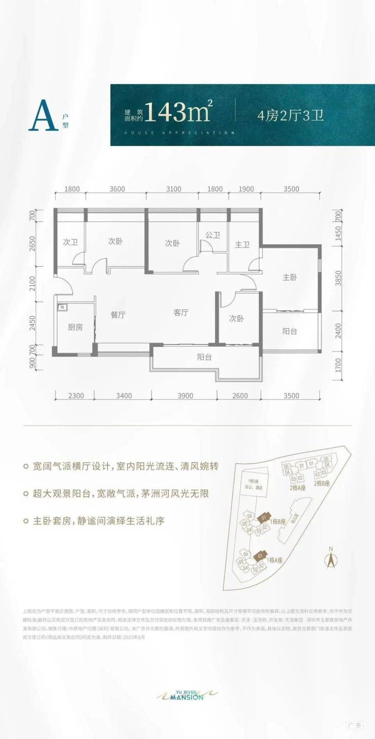 推售户型:建面约80-143㎡2-4房河岸美宅