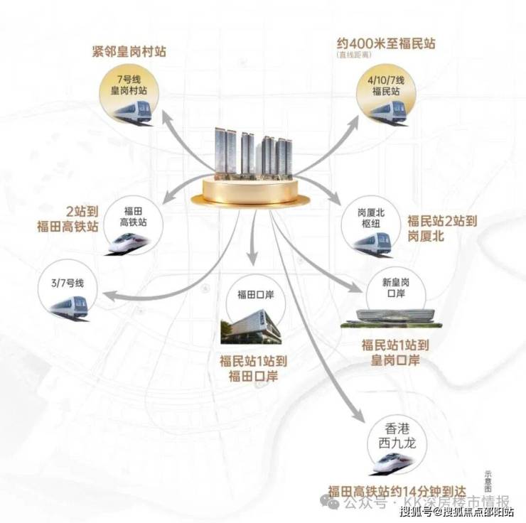 ·1站双口岸 ·2站福田高铁站 ·2站岗厦北枢纽 ·双地铁口 四地铁线