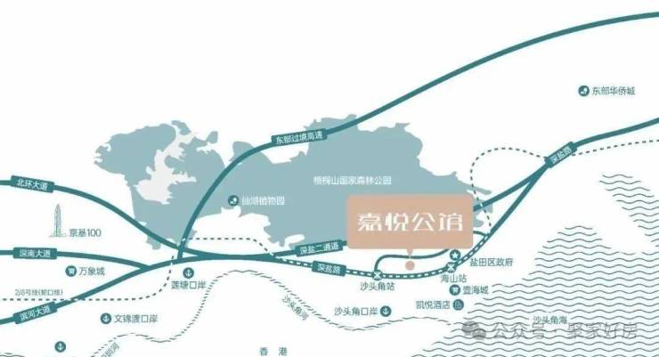 嘉悦公馆,位于盐田区沙头角街道核心区域,紧邻地铁8号线沙头角站C口,步行距离约700米,5分钟可达。项目背靠梧桐山生态屏障,南眺19.5公里大鹏湾海岸线,部分高楼层户型可享"山海双景",负氧离子浓度常年高于外区60%,空气质量优良率达100%。