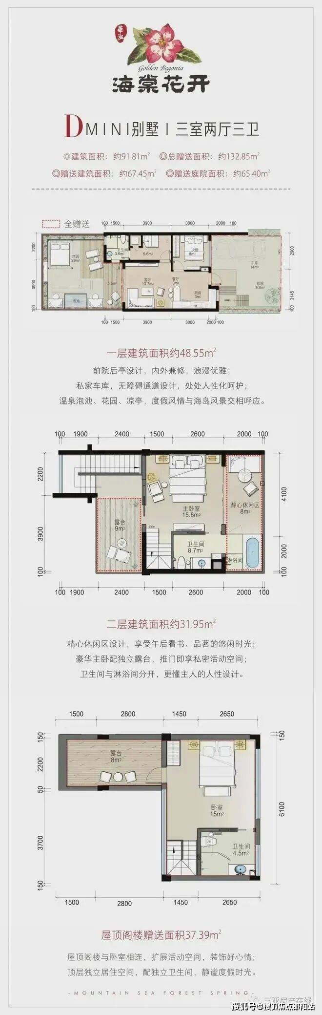 项目介绍:海棠花开位于国家海岸三亚海棠湾南田温泉旅游度假区,是由华泓投资精心打造的以养生养老服务、五星酒店服务、管家式物业服务为特色的中国酒店服务式度假颐养社区。全社区揉合71项适老适小人性化设计,并依托颐和轩康养服务机构,打造80项颐+度假养生服务。山、海、林、泉,颐养秘境!