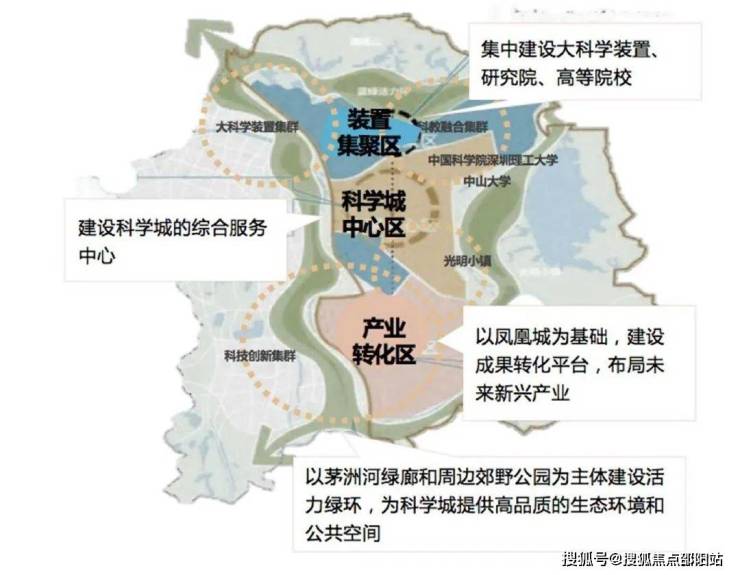 光明区,定位“深圳北部中心”,是大湾区综合性国家科学中心的先行启动区和核心承载区所在。以“世界一流科学城”为目标,打造原始创新策源地、科研经济先行地、创新人才集聚地。