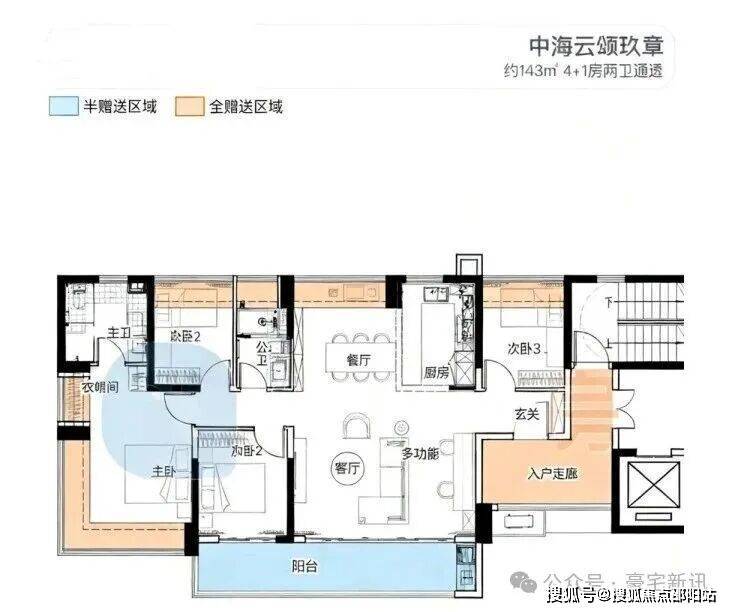横厅布局,南北通透,独立入户玄关全赠送,客餐厅分区明确,横厅搭配多功能空间,五开间朝南。主卧 270° 无柱转角飘窗,1 次卧朝南、2 次卧朝北,U 型厨房,卫生间干湿分离,(含赠送)得房率近 100%,朝向为西南 / 东南。