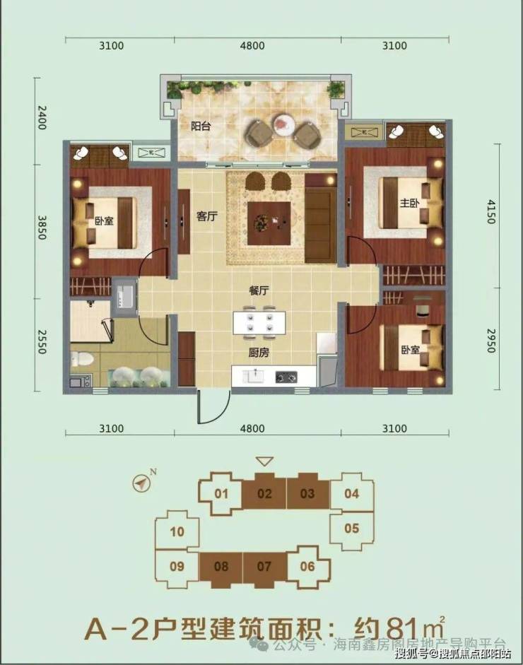 ⭐A-2户型建筑面积:约81㎡