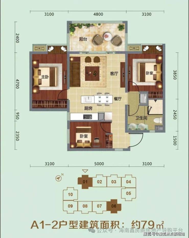 ⭐A1-2户型建筑面积:约79㎡