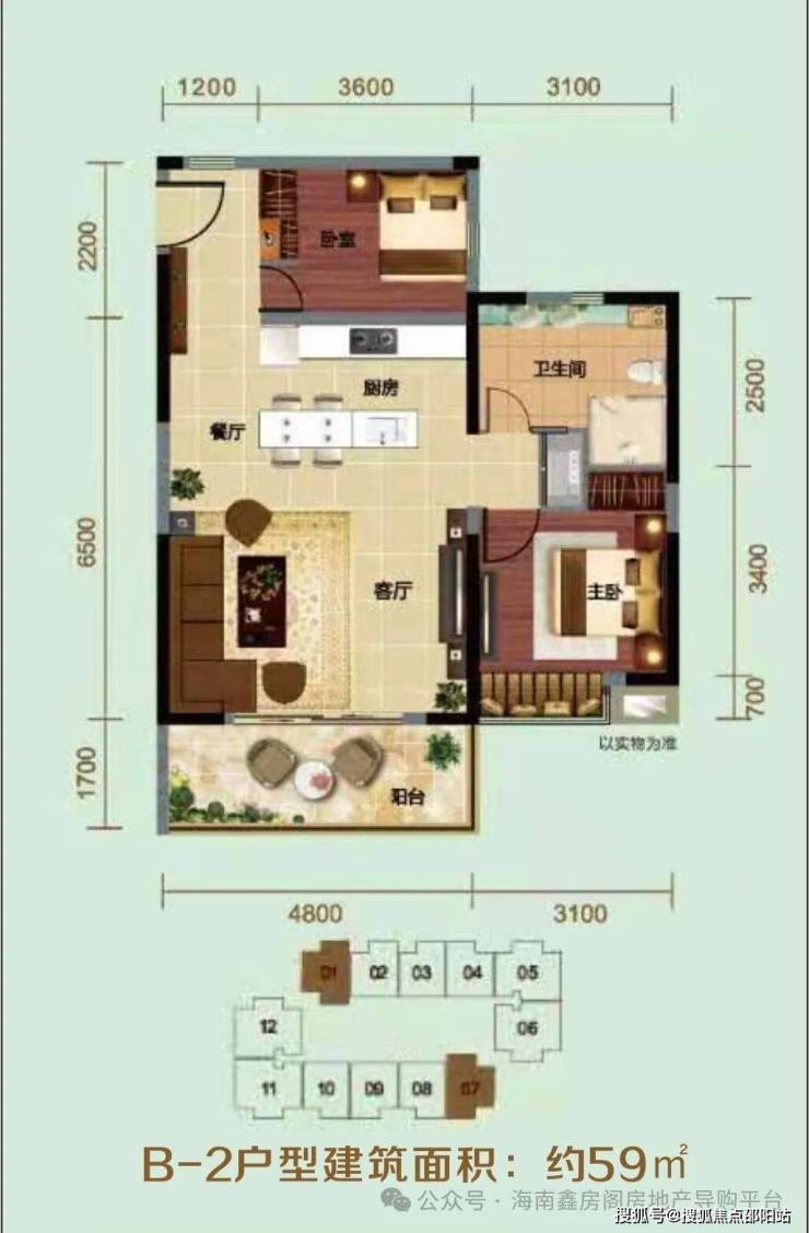 ⭐B-2户型建筑面积:约59㎡