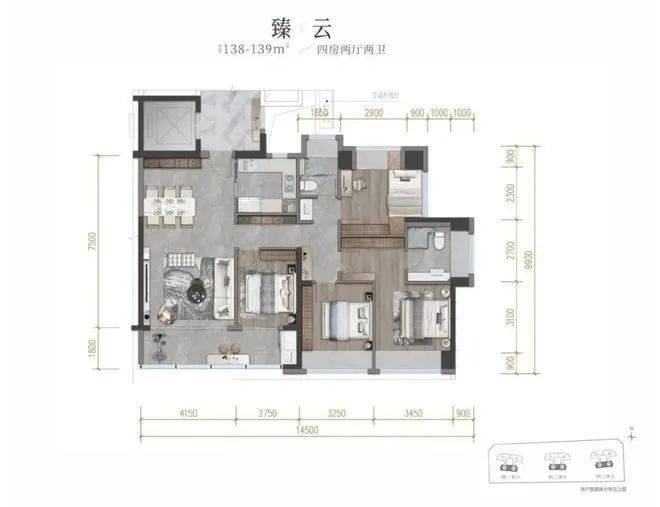【产品户型】:建面约202-204㎡四房两厅三卫