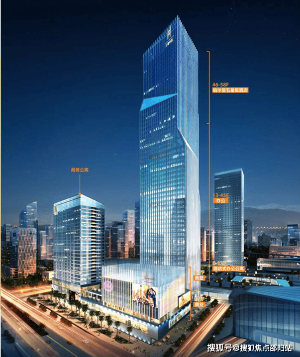 业态:办公6.5万㎡、酒店4.8万㎡、公寓3万㎡、商业2.9万㎡