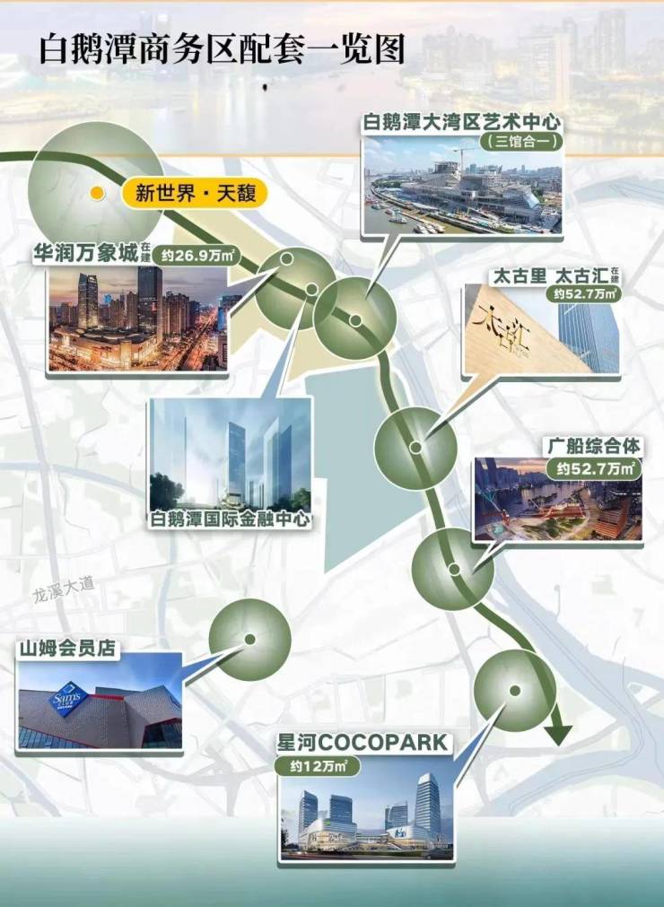 附近有全国规模最大的万象城,已于2023年6月开工,预计26年正式营业,太古汇购物中心,太古里滨水街区2022年9月动工,27年营业,小区也会配建4.3万方社区商业。