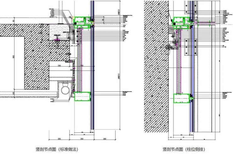 ▲ 酒店裙楼折线玻璃幕墙系统节点图