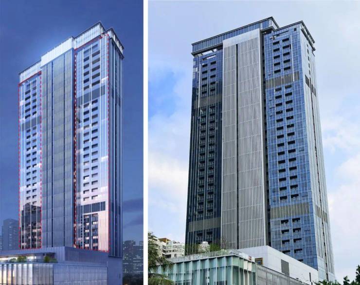 1、酒店塔楼竖明横隐单元式幕墙系统
