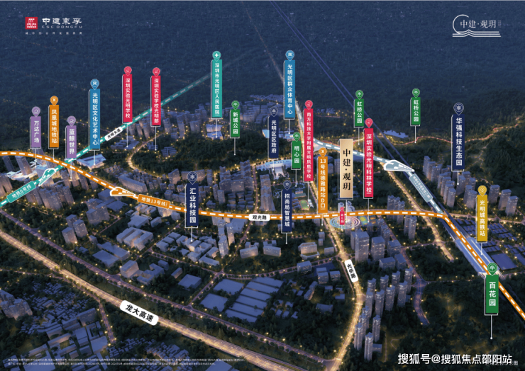 光明城高铁站,也是广深港高铁线和赣深高铁进入深圳的第一站,周边还邻近观光路,光侨路,深圳外环高速,龙大高速等主要交通要道。