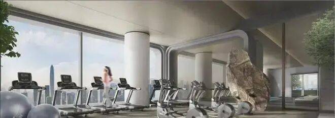 配备丰富器材的云端健身中心,与楼下绿意掩映的社区跑道,