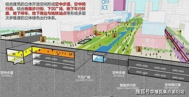 3、立体交通——未来片区多层次、多维度的立体绿色出行体系。双地铁上盖,市政规划的空中连廊系统,“0”距离接驳全城。