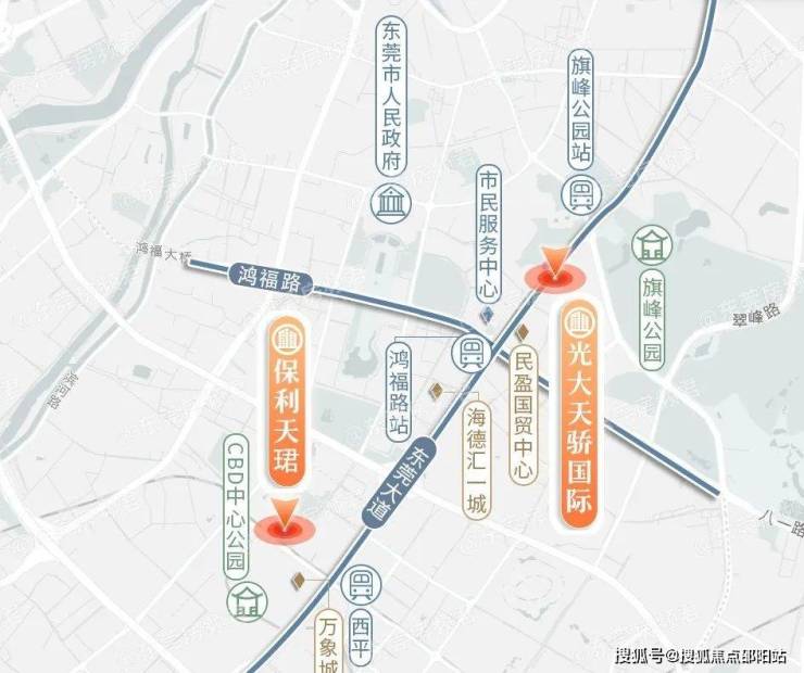 项目坐落于鸿福路和东莞大道相交的黄金双轴交点,旁边便是国贸商圈,是名副其实的双地铁口顶配小区。