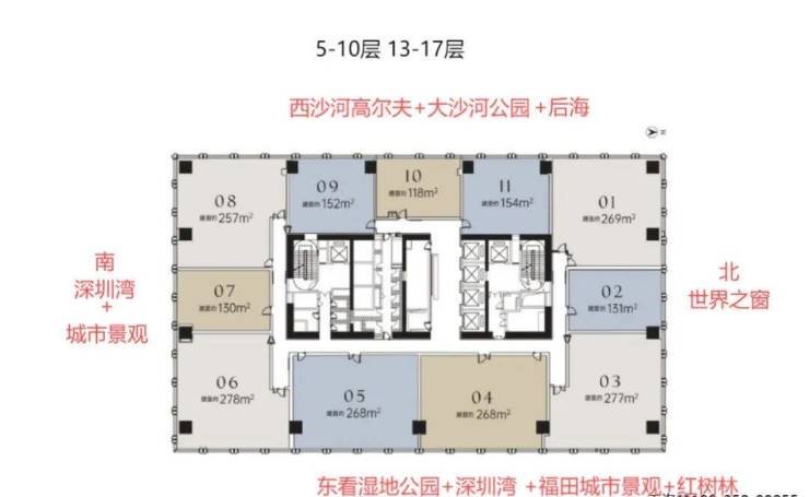 【5-10F/13-17F 118~278㎡ 6梯11户】