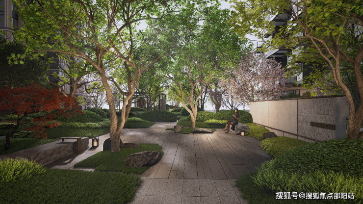 在软景植物设计上,选取如名贵树种罗汉松、朴树、红果冬青、红枫等姿态优美同时具有美好生活寓意的树种,营造良好的社区空间氛围。以因地制宜,四季有景为原则,植物分区营造,以春夏秋冬四景,设计不同的主乔木搭配地被层植物,局部点缀花境,营造丰富的社区空间氛围。