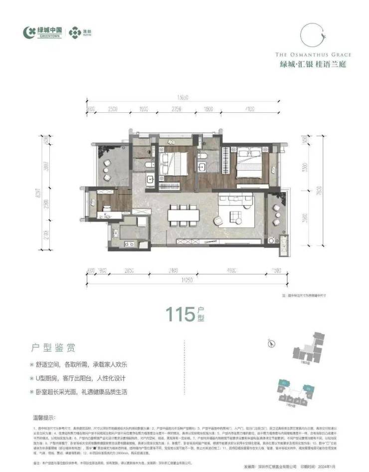 目前,绿城桂语兰庭的在售户型包括89平方米的三房两厅两卫、115平方米的四房两厅两卫以及128平方米的四房两厅两卫