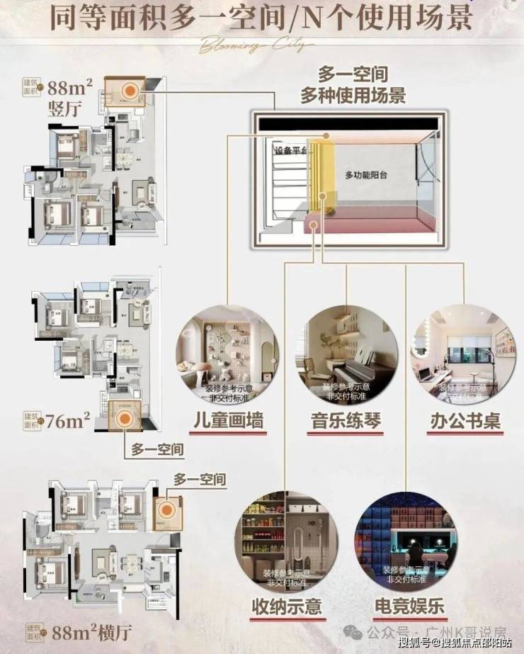 76-88平3房+1空间,对比现在的天河东新盘,依然有很出彩的地方: