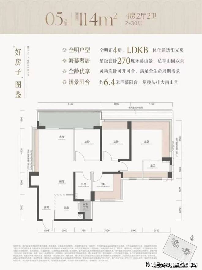 【建筑面积114㎡4房2卫】