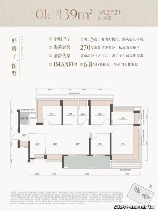 约80%南向全明大面宽户型,全屋环绕式采光面,盛满一室阳光;约6.3-6.8m阔景大阳台,晨间瑜伽、午茶瞰海、暮色小酌,海幕星空自成生活背景;海景星级套卧,270°环幕自在观景,享受头排海景盛宴。